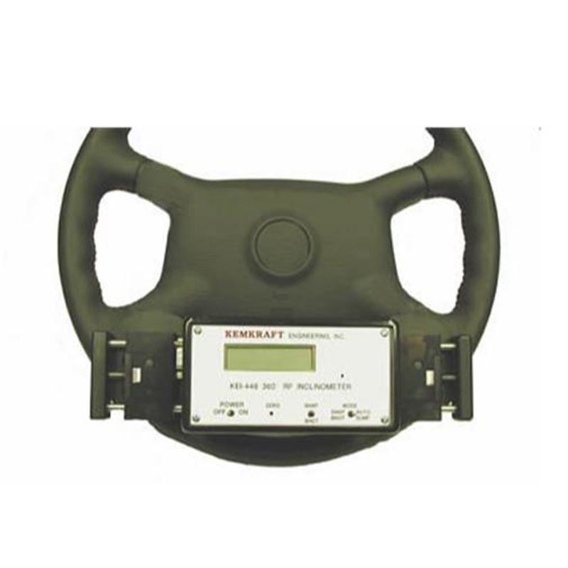 KEl-446倾角仪安装在Kemkraft机械夹具上后,可精确且可重复地安装在方向盘上。该装置可测量并显示在LCD上,角度可达士999度。Kel-446从RS-232串行端口进行锁到锁的角度抓拍或实时转储角度的ASCI。该单元还将角度RF传输到KEl-446RX或KEI-1633RX型号的接收机。